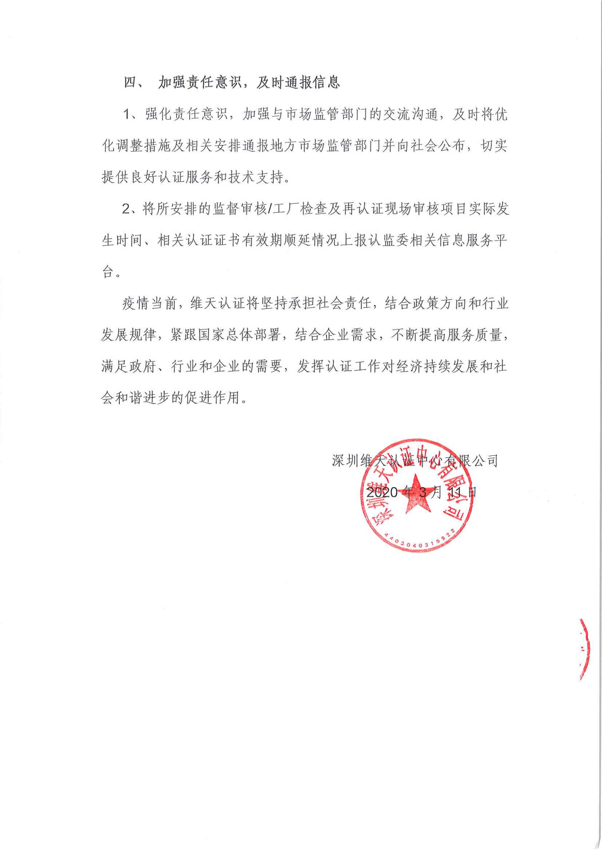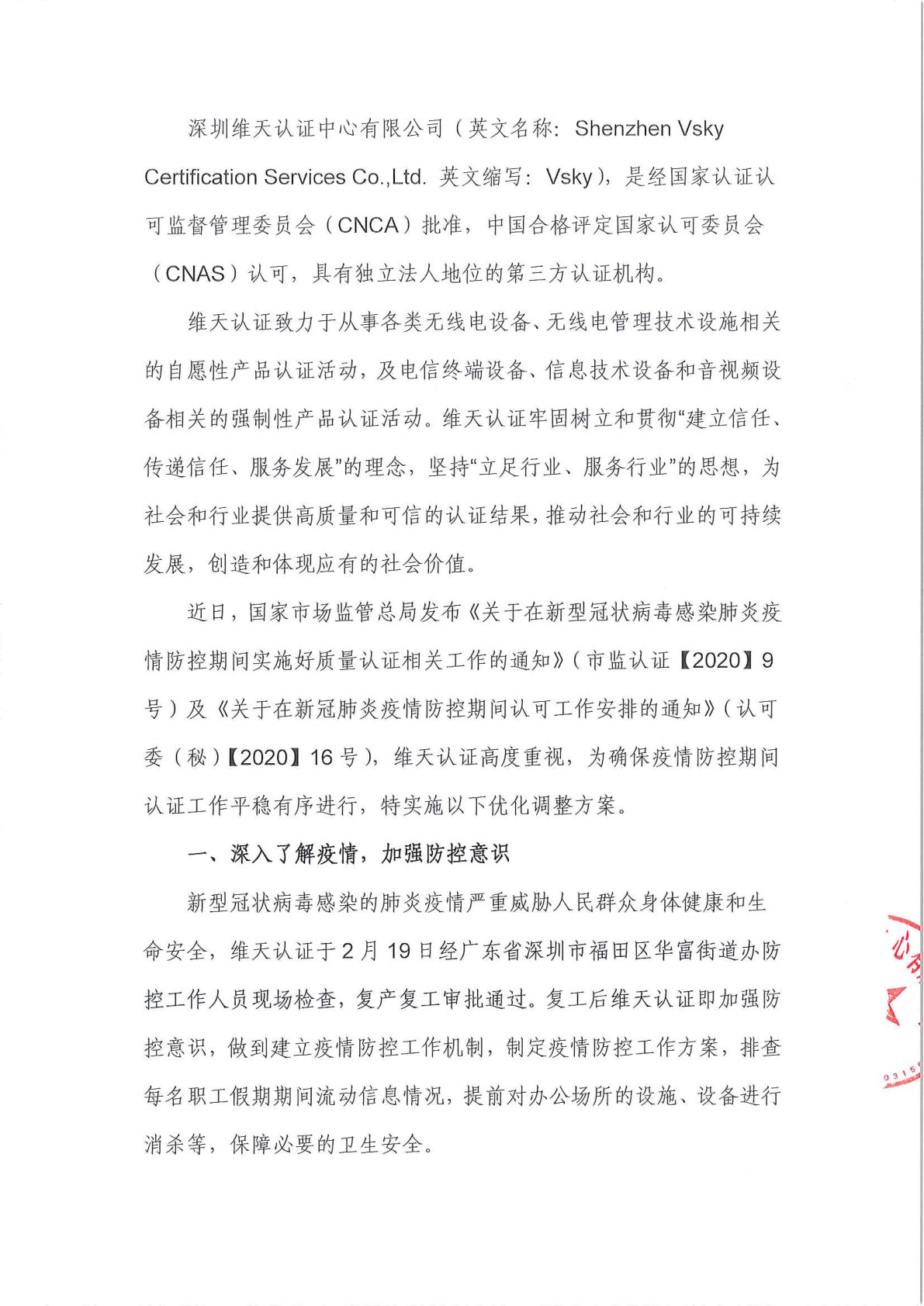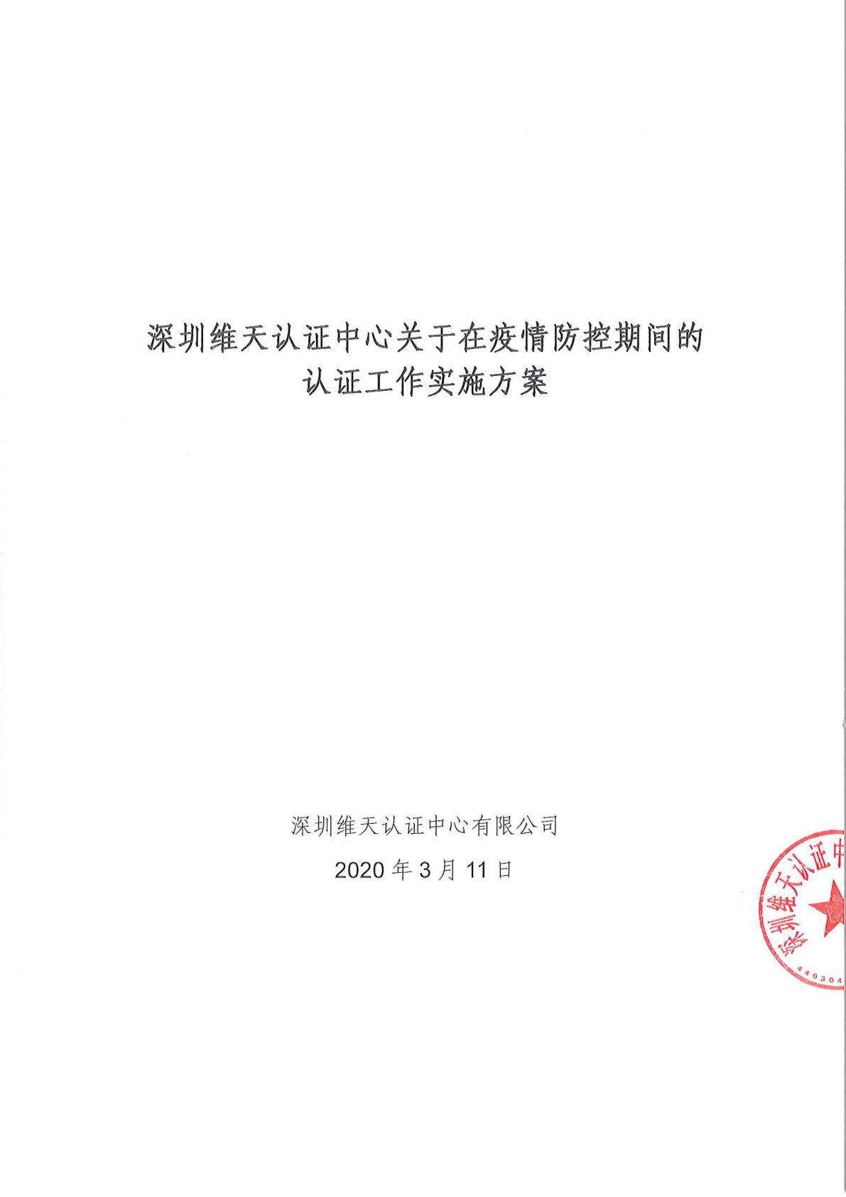 深圳维天认证中心关于在疫情防控期间的认证工作实施方案
