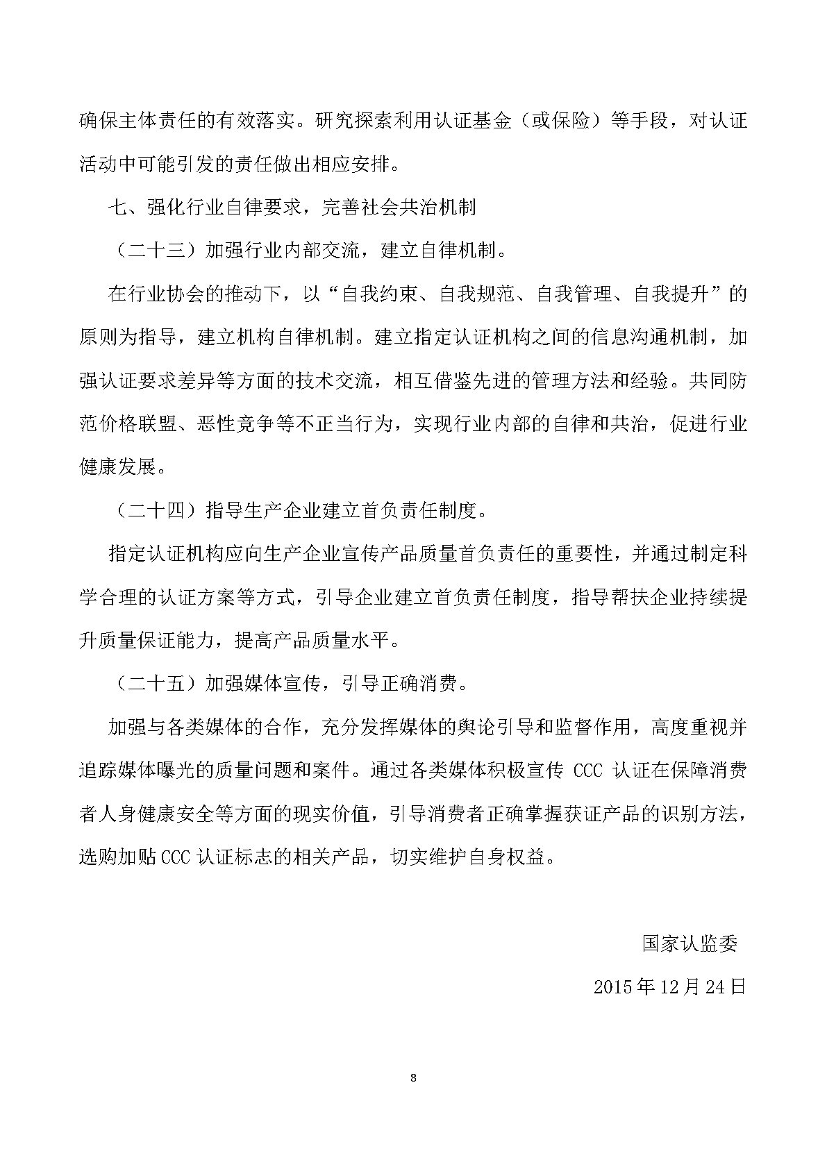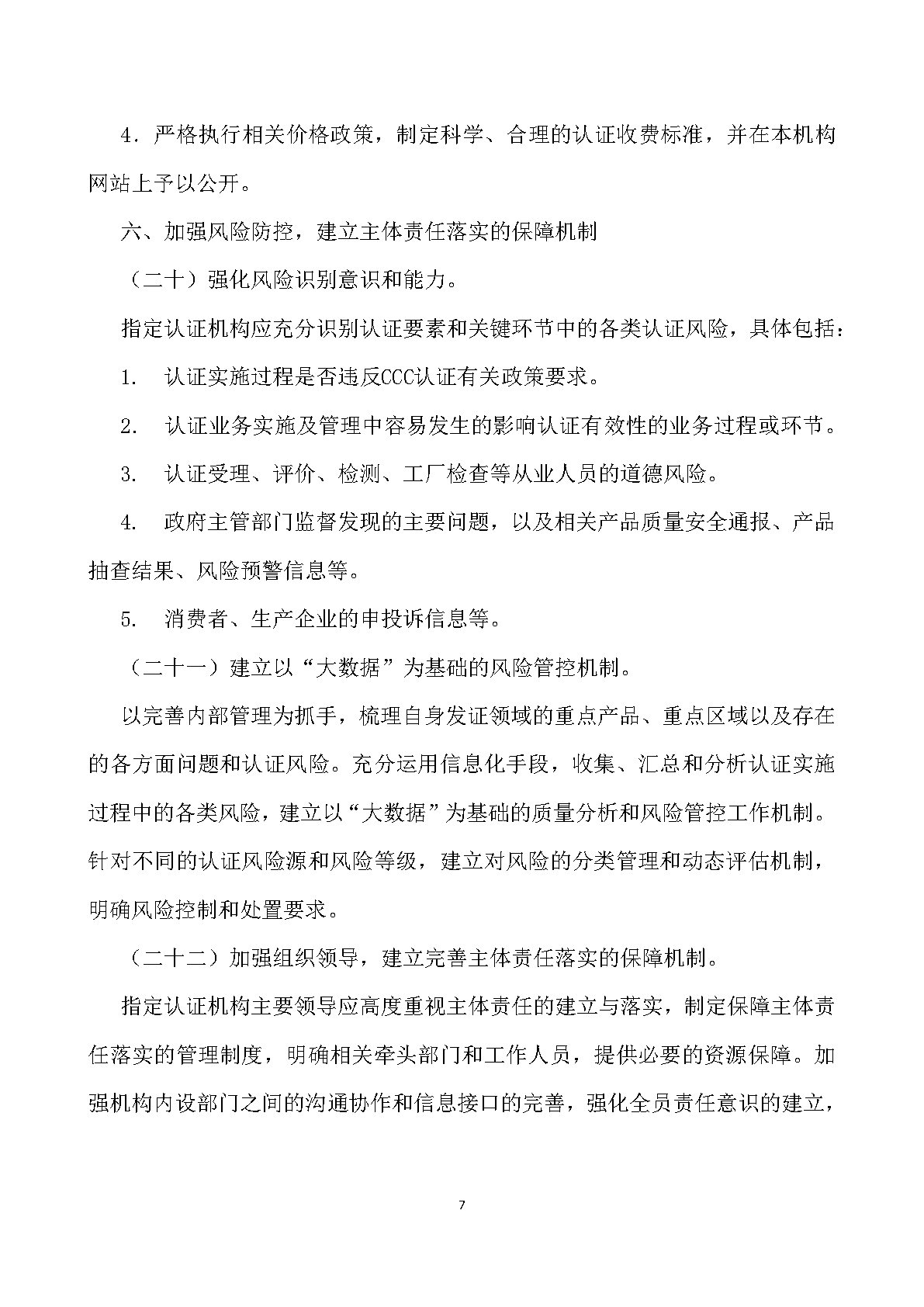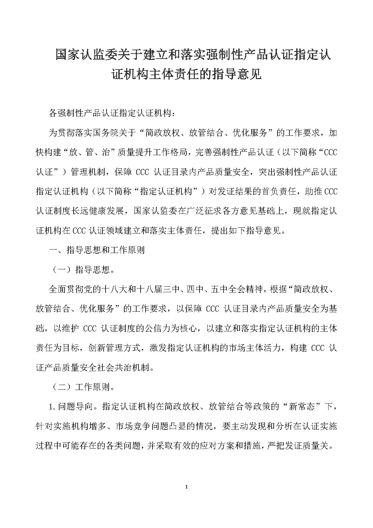 国家认监委关于建立和落实强制性产品认证指定认 证机构主体责任的指导意见